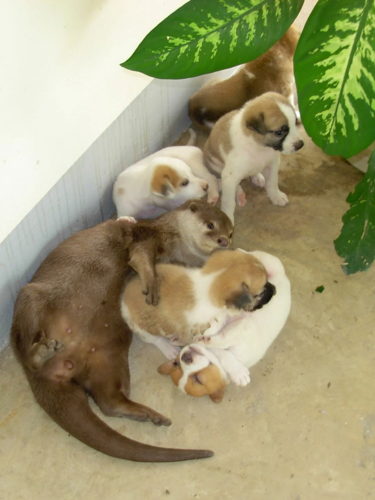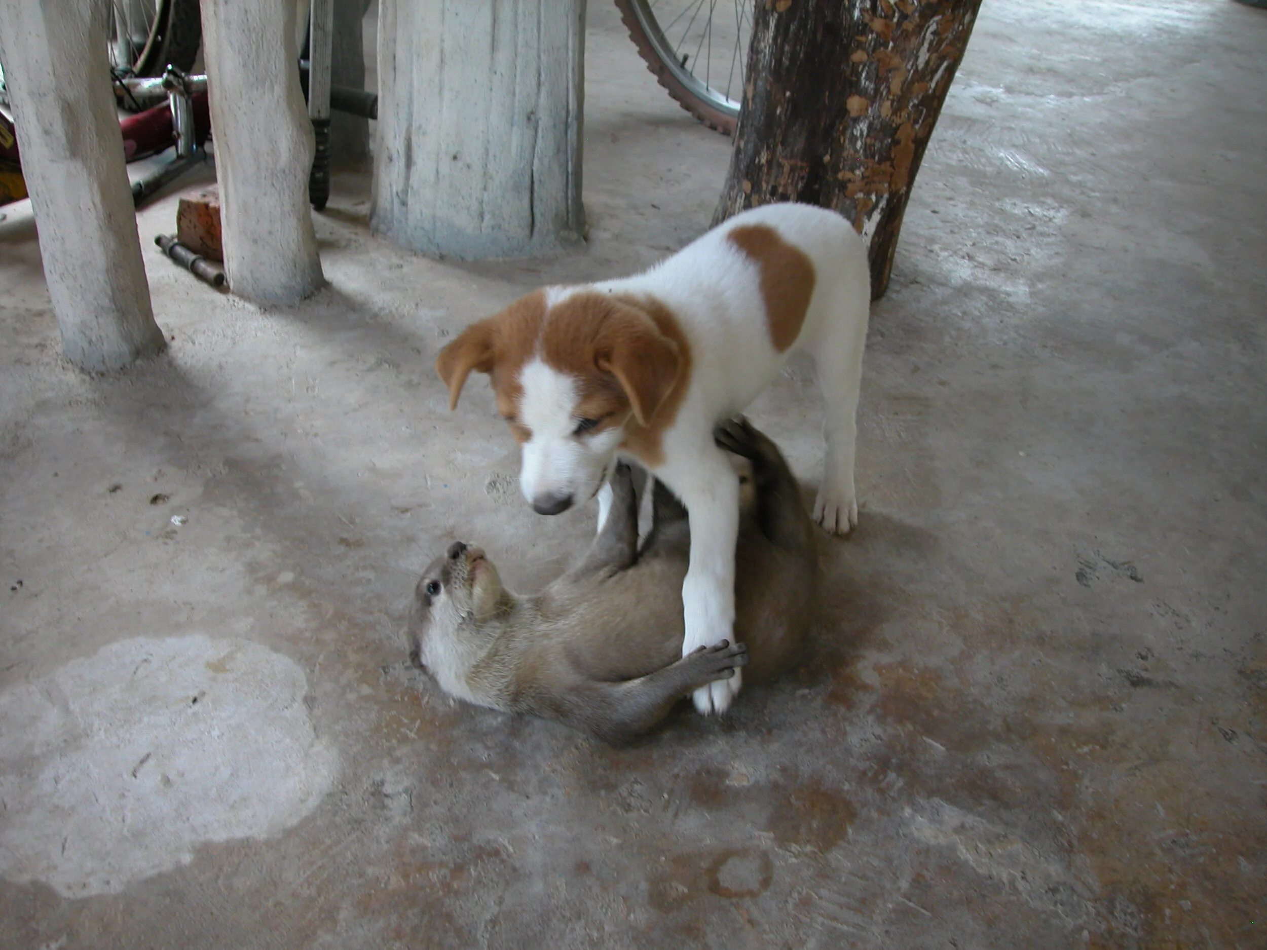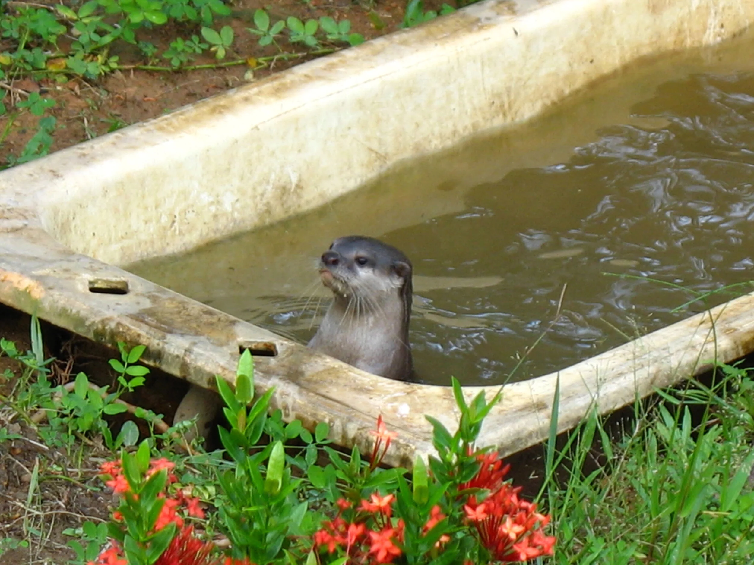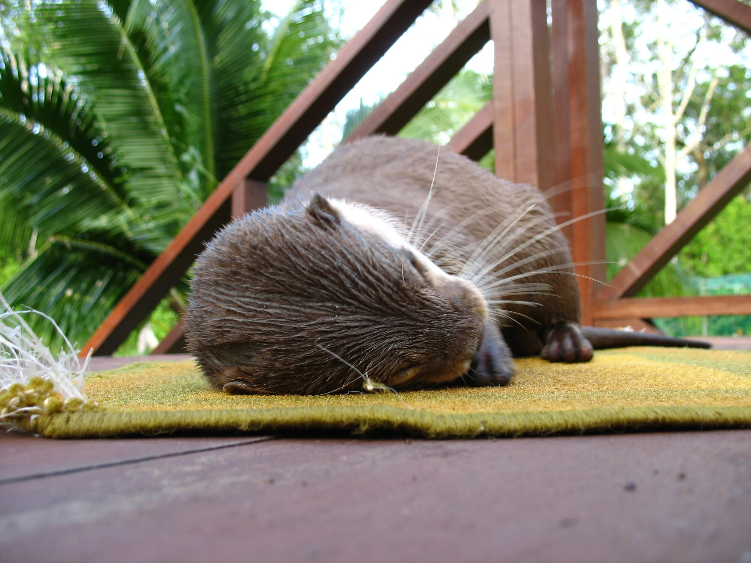 Because of her foster family, Hanyut was very accustomed to the presence of people. Her behaviour is quite atypical of a wild otter as she was more a ‘puppy’ than a wild animal. She spent her days sunbathing on the observation decks and playing with her canine siblings.
