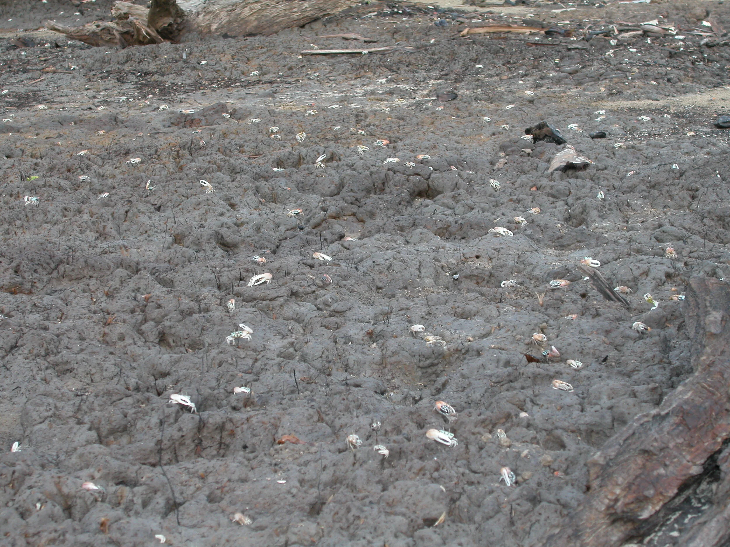 Also nicknamed the Popeye Crab in Labuk Bay, the males have one single large feeder claw while the females have two small claws. Extremely shy, the lightest footsteps are enough to send them scurrying back underground. However, pay attention to falling leaves and see these crabs scuttle out of their burrows to catch the leaves before taking them home! Fiddler crabs are scavengers that feed on dead plants, algae and decaying material and they play a vital role in the ecosystem.